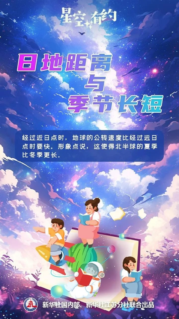 有意思的是,日地距离变化会影响到地球绕太阳公转的速度,这使得地球上不同季节的长度不同。经过近日点时,地球的公转速度比经过远日点时要快。在北半球,夏季比冬季更长。