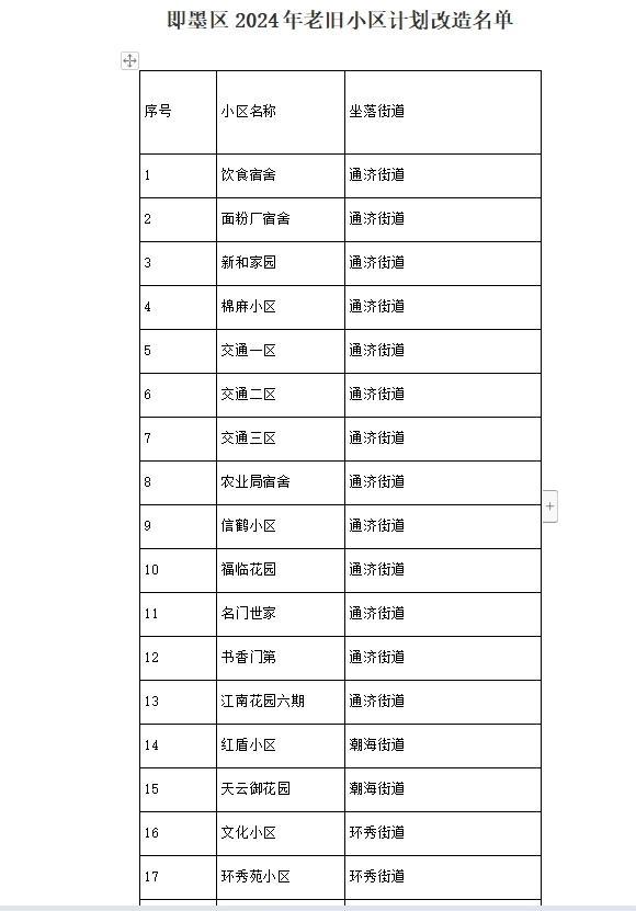 1月3日,即墨区住房和城乡建设局发布2024年老旧小区计划改造名单,名单中共有17个小区将在2024年实施老旧小区改造。