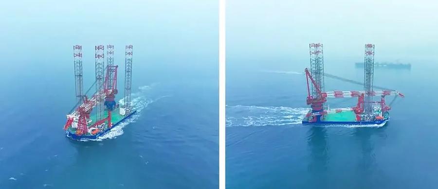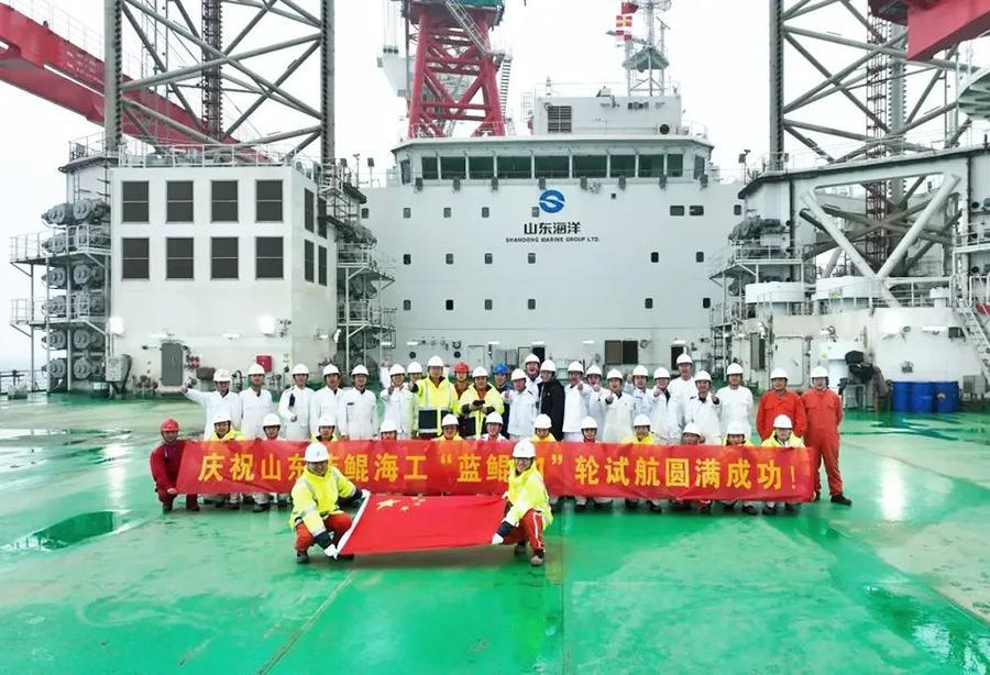 近日,山东海洋集团“蓝鲲01”1500吨全新一代自升自航式一体化海上风电安装平台在青岛顺利完成航行试验。