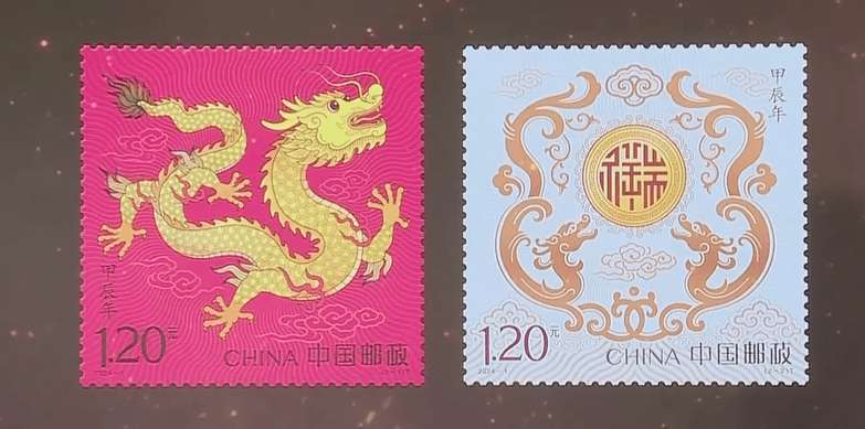 今年是农历甲辰年(龙年)。在中国传统文化中,龙既是权力与尊贵、文化与智慧的象征,也寓意着润泽万物、祥瑞纳福,因此在十二生肖中最具民间影响力、最受关注。今天,中国邮政发行《甲辰年》特种邮票一套2枚。由于发行量降低,出现了一票难求的现象。
