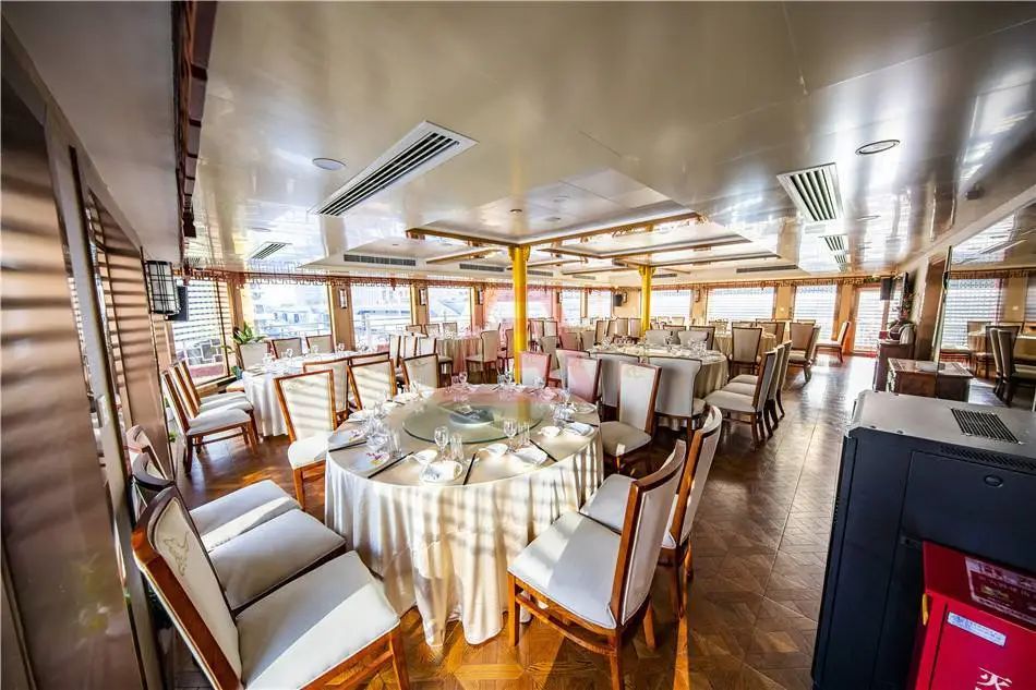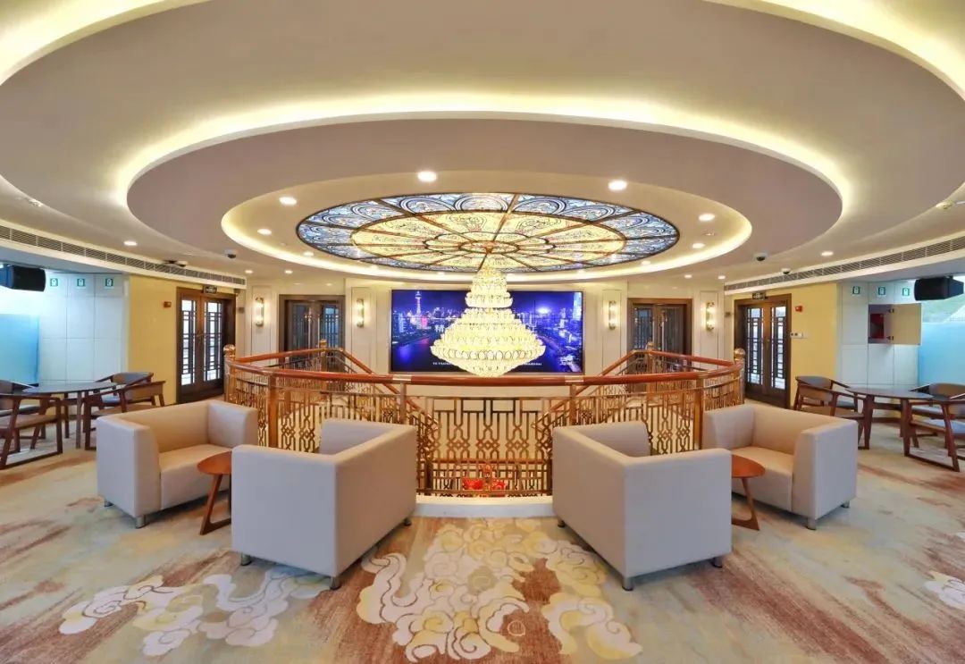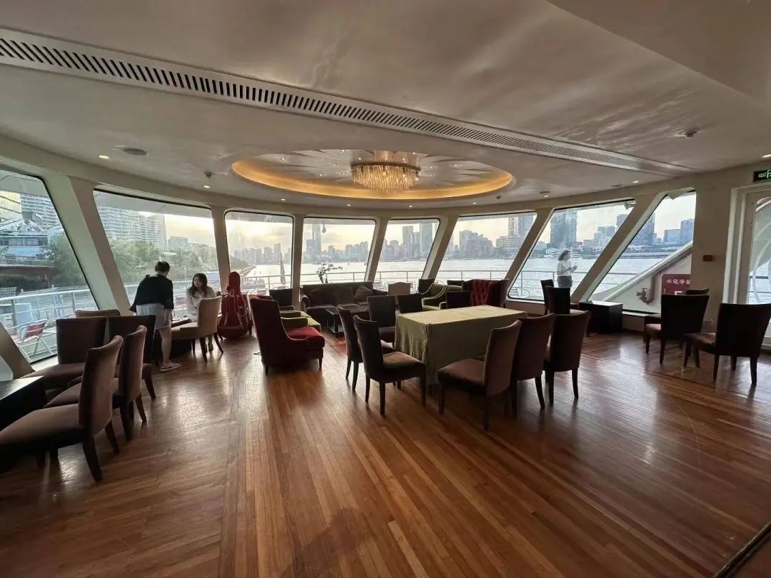 全船还采用玻璃幕墙结构,可以让游客从多视角全面游览黄浦江迷人的风光。船上还配有VIP包厢、酒吧、超大投影等娱乐设施。