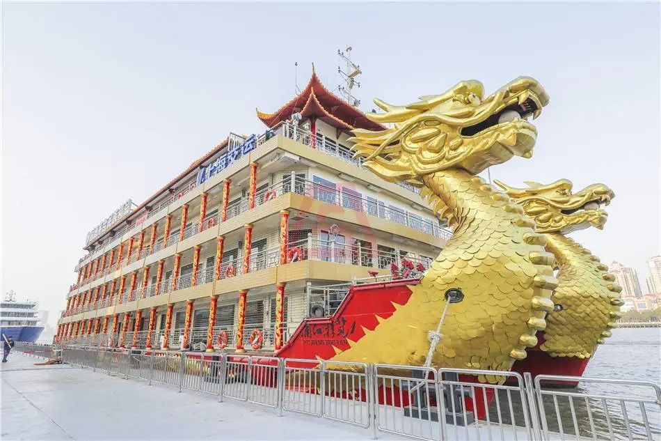 “龙船”总长57米,船宽17米,船体共四层,一、二、三层为舱室,四层为阳光甲板,载客量为1000人。