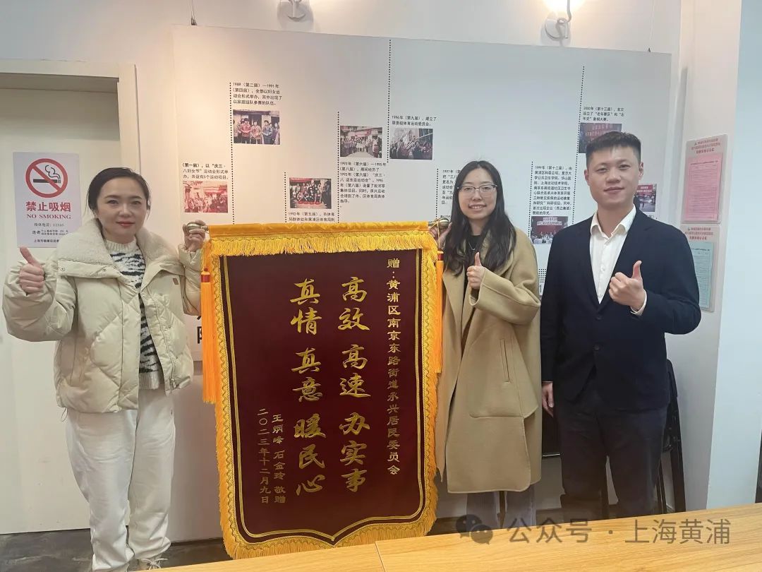 让魏巍没有想到的是,过了几天,王先生和石小姐再次来到黄河路用餐,同时把一面锦旗送到了承兴居委:“感谢居委干部‘高效、高速办实事,真情、真意、暖民心’,让我们切身感受到城市之心的人情味。”了解到王先生和石小姐早就做好了锦旗,当天结束出差从外地赶回上海之后第一时间送来,魏巍感动地说:“谢谢大家对居委工作的认可,未来,我们也会进一步服务好社区,让居住人群、工作人员、游客人群都能感受到城市之心的民生温度!”