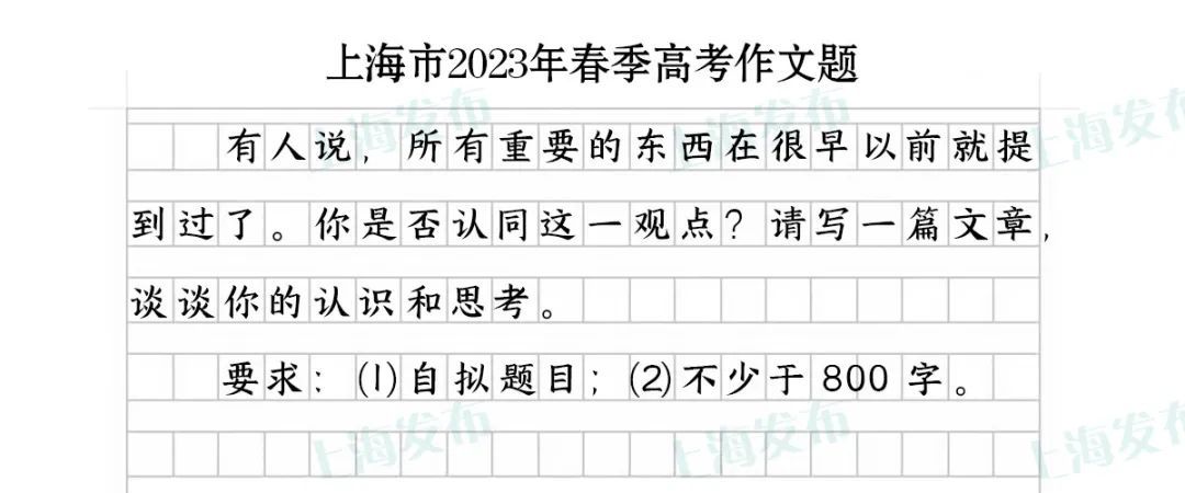 今天上午9:00,2024年上海市普通高校春季招生统一文化考试和2024年1月上海市普通高中学业水平合格性考试的首场语文科目考试顺利开考。今年春季高考作文题如下。