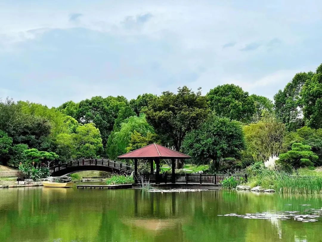 Across from the Hongqiao traffic hub is a forest that covers about 13 hectares, just off Zhaojia Road in Zhaojiacun Village.The forest has been growing in Huacao Town for two generations. But 20 years ago it was a deserted rice paddy field."The villagers learned that I ran a plant nursery. They found me and asked if I was interested in the land," said Yin Wenyuan, a nursery owner. "So I rented the land and grew some seedlings for landscaping. They turned into bigger trees and I loved the idea of having a thriving forest. I built water channels and lakes, and put more effort into it."As the forest spread, Yin began his mission to both benefit his hometown while creating a thriving ecological area.However, at the time, he failed to meet some of the proper land use policies, and the development of his forest had come to a halt.It wasn't until 10 years later that Yin's dream was reignited when Yin Junlan, his daughter, returned after completing her master's program in the UK.Yin Junlan and her father Yin Wenyuan"I'm really close to my father, so when he decided to develop the land again, I was very supportive. I knew how much effort he had put into it. We wanted to turn the forest into a family-friendly campsite," said Yin Junlan.Before she undertook the project, she had been a bank clerk and a cafe owner.During a visit to Taiwan, Yin learned how important nature and forest education meant to local children, and founded the Firefly Parents and Kids Nature Club. Whenever the seasons changed, she would bring groups of children to admire the flowers, watch birds, catalog insect, watch the stars and do other nature-related activities.The beautiful scenery of a lake inside Youyou Forest