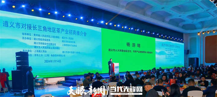1月14日,遵义市对接长三角地区茶产业招商推介会在上海举办,活动由省人民政府驻上海办事处、遵义市人民政府指导,遵义市投资促进局、遵义市农业农村局、遵义市供销合作社联合社、上海市茶叶行业协会、遵义市人民政府驻上海办事处主办,上海遵义商会、遵义市茶叶流通行业协会承办。上海及长三角地区优强企业、上海遵义两地知名茶企代表、上海遵义商会会员企业560余人参加活动。