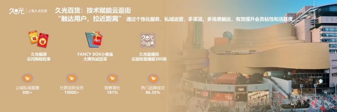 触达用户,拉近距离”。上海久光百货用全链路数字化来重塑“人、货、场”之间的关系。通过个性化服务、私域运营,多渠道、多场景触达,有效提升会员粘性和活跃度。凭借新春福袋、周年庆福袋、独家小美盒,与消费者建立起紧密联系。