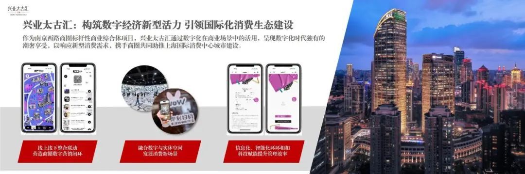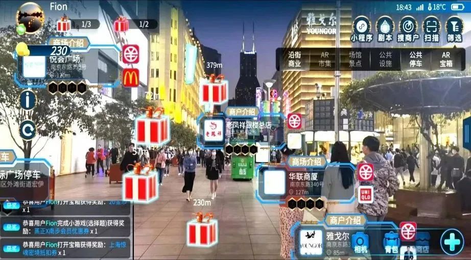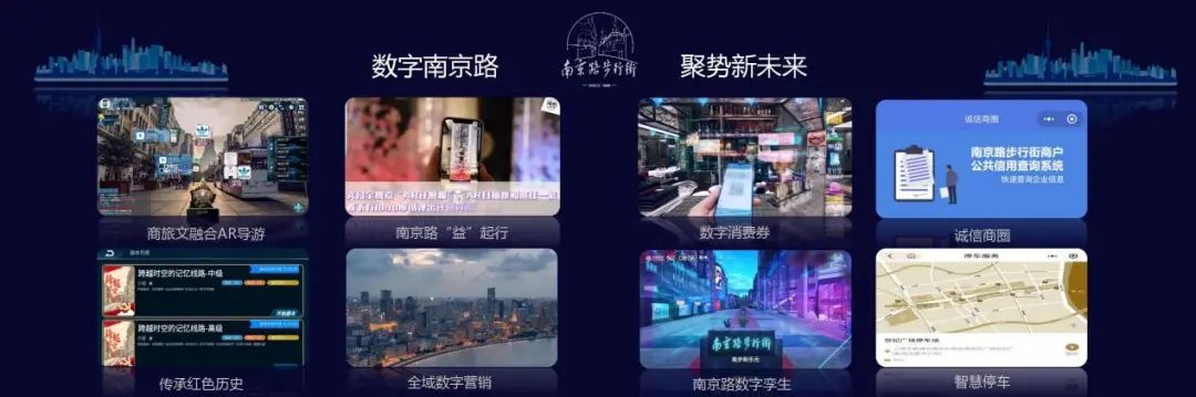 “勇立潮头,迭代焕新”。上海南京路步行街商圈紧密结合实体商业与数字场景,打造异业共同繁荣的新商业环境。以AR导览连接这厢和那厢;以消费券新模式连接这店和那店,为街区内品牌推广、互动营销及诚信管理提供详尽的解决方案。