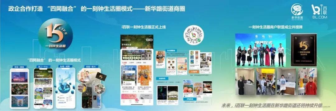 “融合四网,生活添彩”。新华路街道商圈独树一帜,与百联集团深度合作,合力打造线上线下相融合的社区服务平台。凭借“实体一群楼,线上一平台、私域一组群、街道一张卡”,串联起整个街道社区,为居民带来不止于“商业”的一刻钟生活圈。