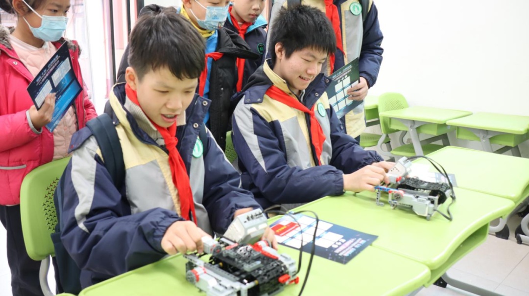 还有巧取天文卡、制作干花团扇、制作会动的木偶、组装动力小车、数码绘画……各式各样的体验百花齐放,同学们在科学的世界里玩得不亦乐乎。