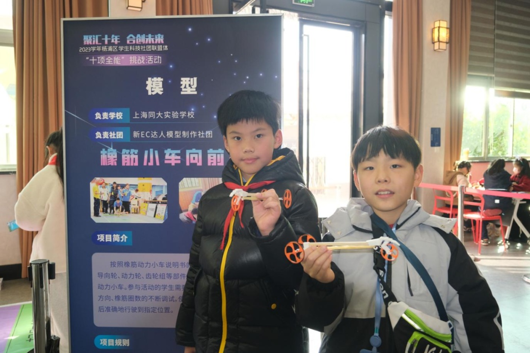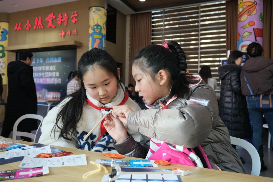 本次活动是杨浦少科站寒假系列活动的第一站,以社团为单位展开,各社团的同学们拿上积分卡和打卡券,迫不及待地开始“十项全能”体验挑战。