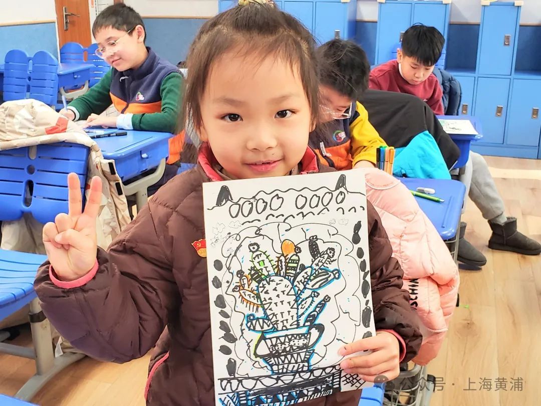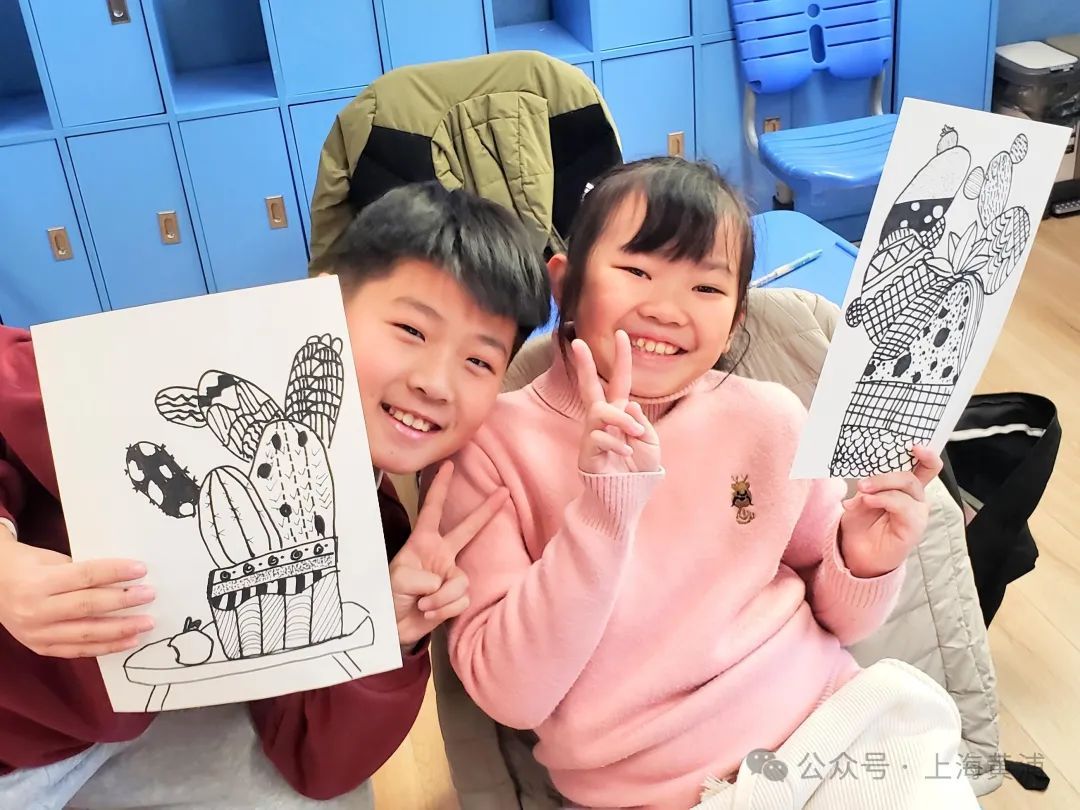 在创意线描活动中,孩子们发挥自己的想象力,充分运用自己的控笔动手能力,绘制优美的线条,创作出一盆盆独一无二的线描仙人掌。