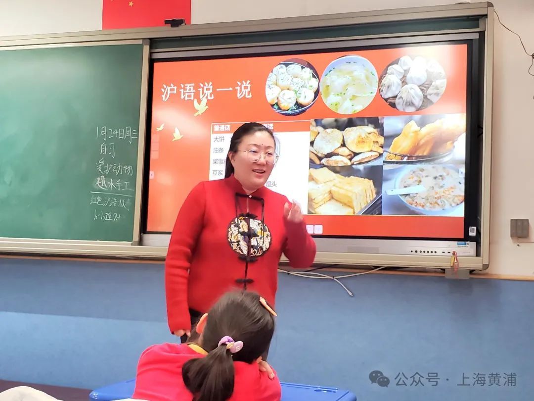 豆浆油条的上海话怎么说?本周红色沪语课堂带孩子们穿越上海的大街小巷,一起学习上海方言,学唱沪语儿歌,跟唱沪语歌曲。在传承地方语言文化的同时,小朋友通过聆听沪语的红色故事,赓续红色基因,学习故事中主人公的优秀品质。