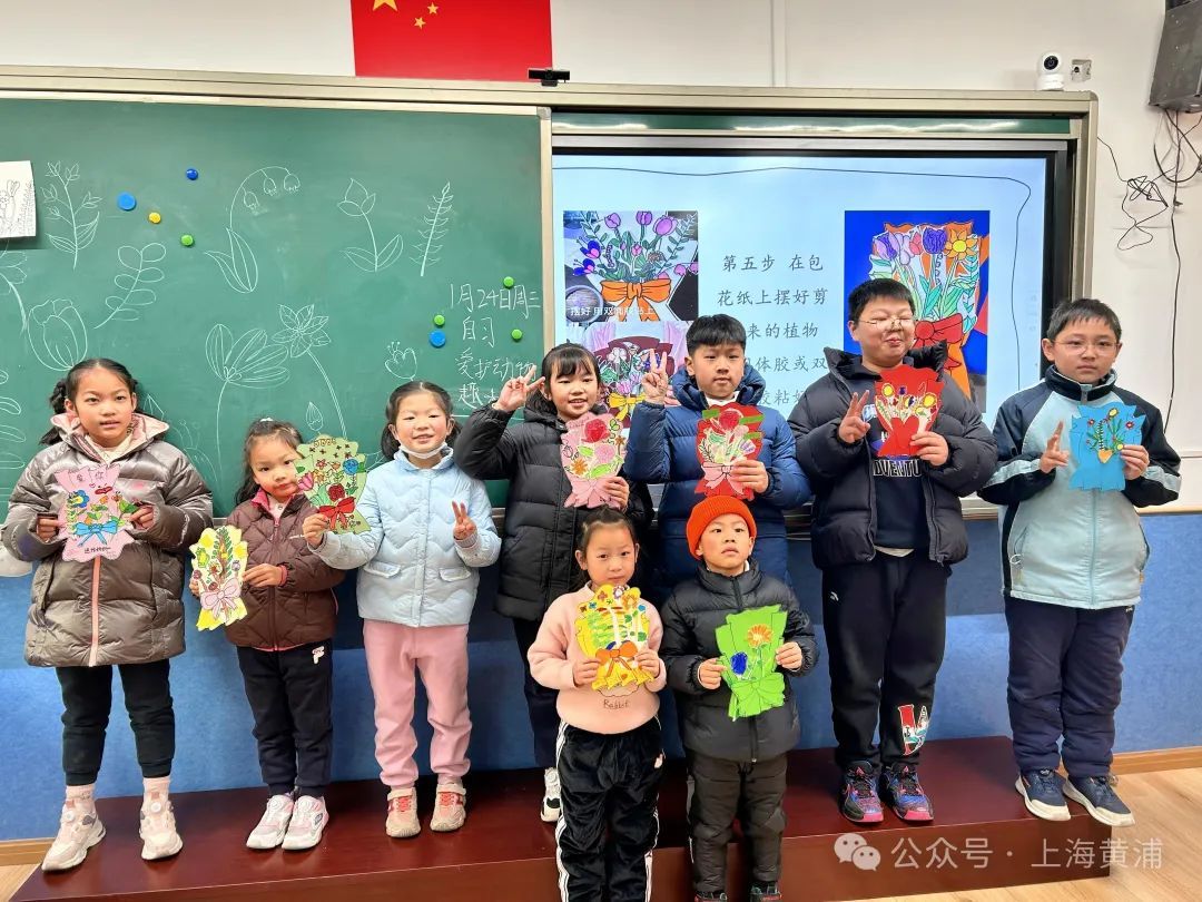 本周,手工拉花纸舞龙、创意线描、手工鲜花等趣味活动带孩子们体验了一场场艺术盛宴。在手工鲜花活动中,小朋友们亲手制作了精美的纸艺捧花并写下祝福,送给最爱的爸爸妈妈们。
