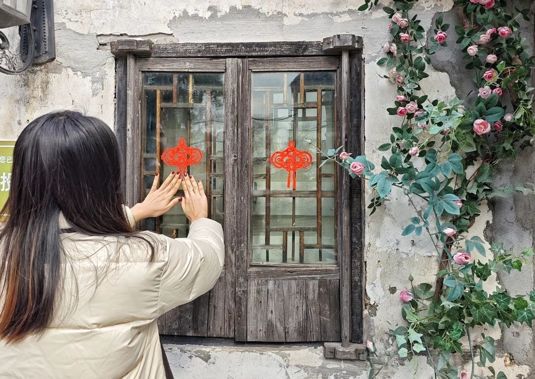 在新春佳节即将到来之际,走在枫泾古镇景区,家家户户都贴上了窗花和对联,浓浓的喜庆氛围迎面而来。 为古镇景区贴窗花是枫泾镇的传统项目,对于古镇居民来说,年味是窗花上的一抹中国红。每到春节前夕,和平居民区剪纸班的阿姨们会抓紧时间赶制剪纸。“因为今年是龙年,所以我们剪纸的元素更倾向于龙元素。”居民孙琪枚表示。据悉,今年阿姨们共准备了280幅对联,380多个窗花,320个福字。 每到贴窗花的时候,枫泾镇和平居民区结对单位的志愿者们以及上海中医药大学附属枫泾小学的学生们都会倾力加入,沿着生产街、和平街、中大街,为每家每户都贴上了“福”字、春联和窗花,让古镇的年味更加浓郁。 记者丨张沈和 艾承琼 刘祚伟 通讯员丨朱丽燕 编辑 | 俞岚婷 责编 | 刘家园 俞岚婷