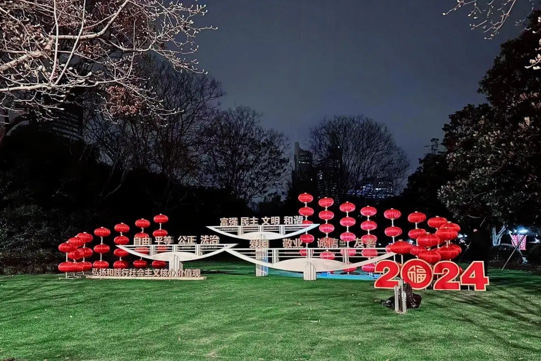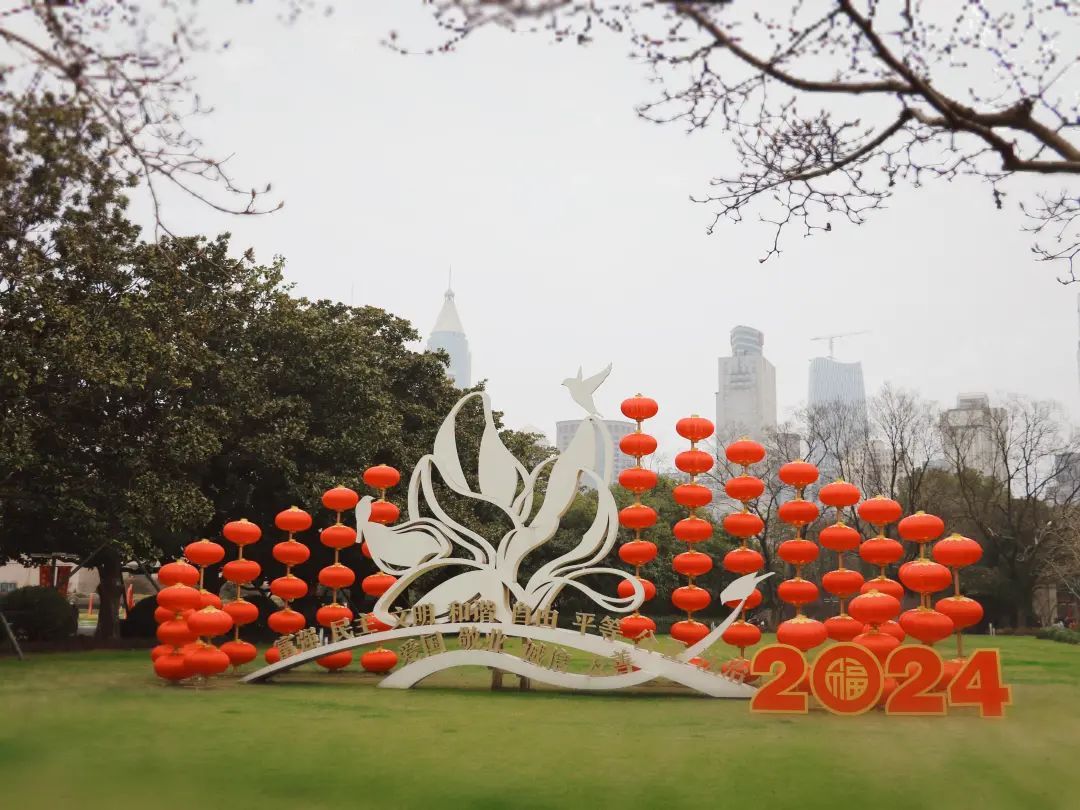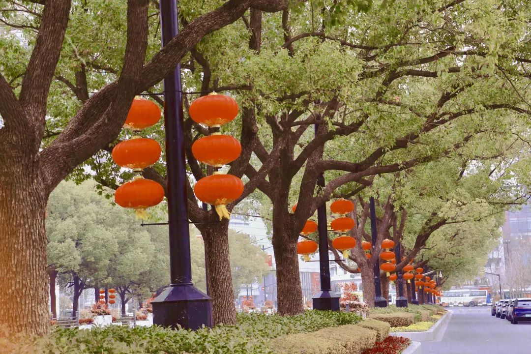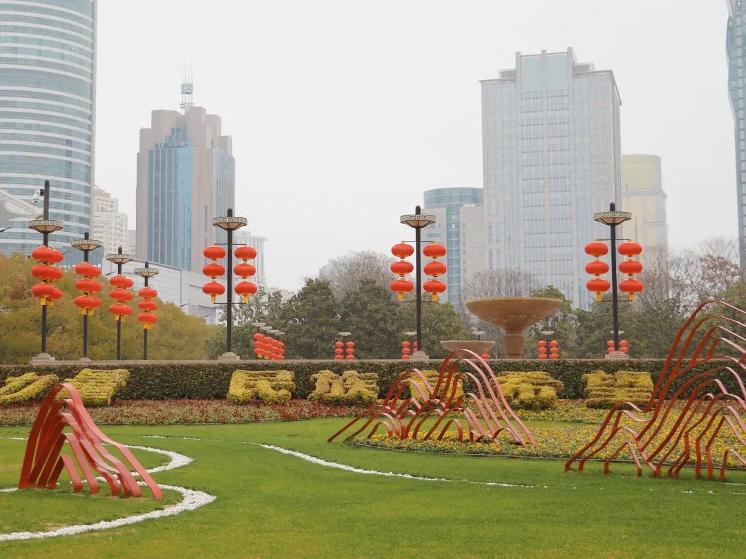 同时,人民大道两侧和喷水池周围,也都装点上了一串串红色的灯笼,与人民广场开放的公共空间相得益彰,远远望去红红火火的年味十足,成为了城区一道亮丽的风景线。