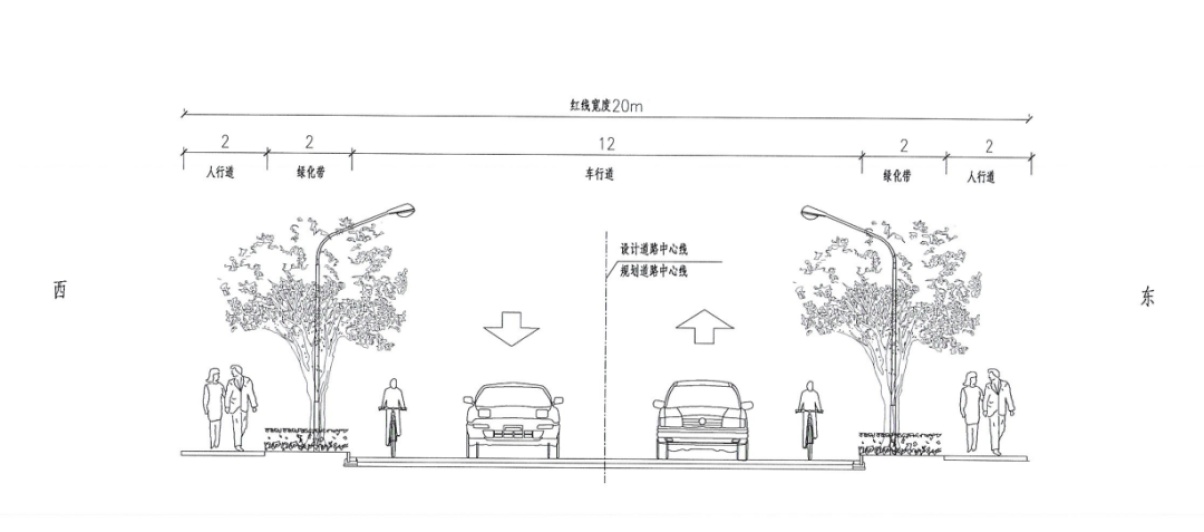 道路长度约615米,道路红线宽度20米,道路等级为城市支路。