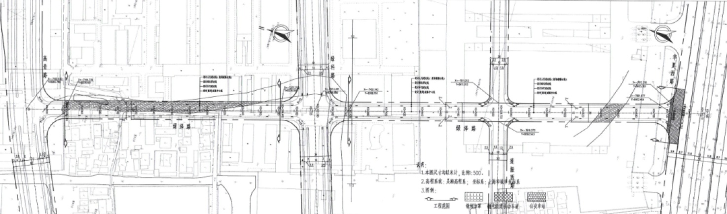 项目基地处于浦东新区北蔡镇范围,道路北起高青路,南至华夏西路。