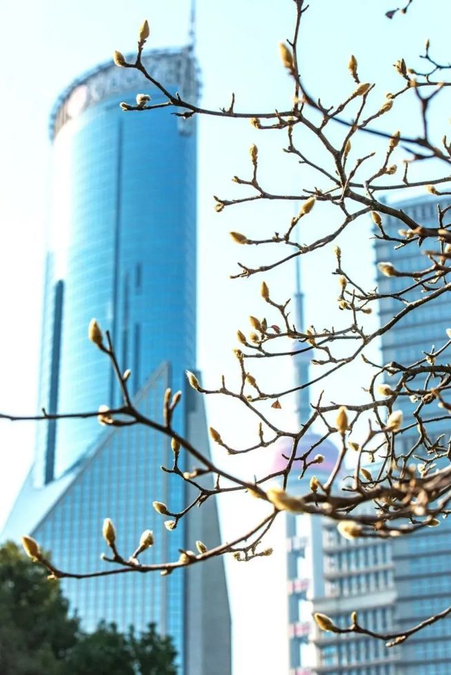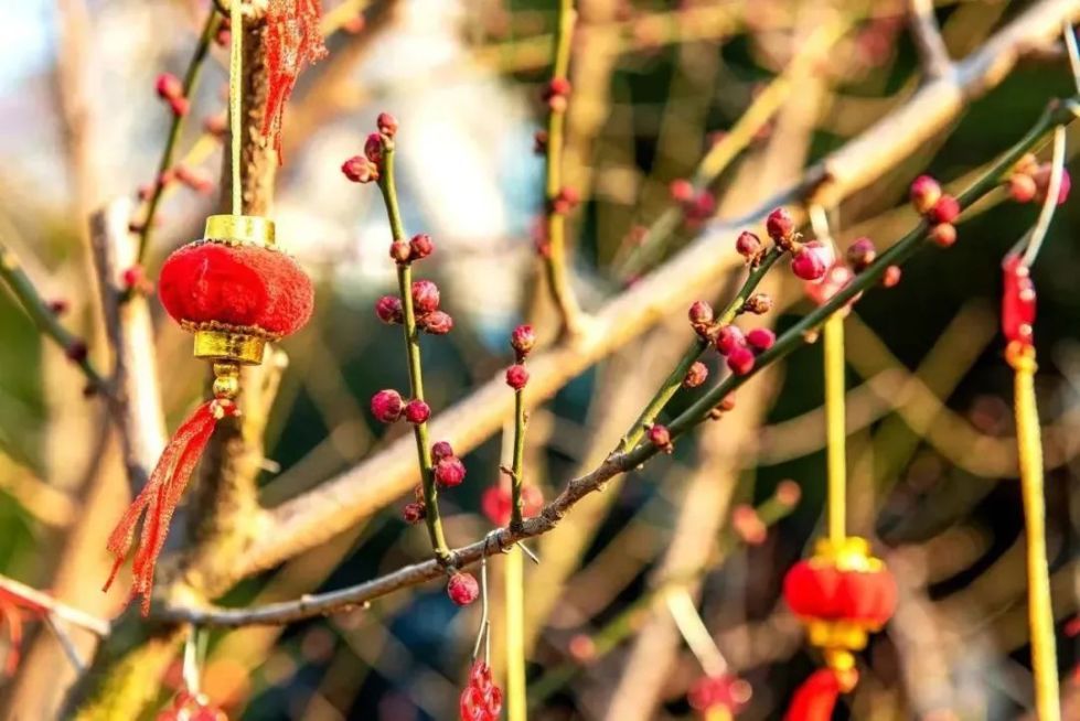 北滨江的红梅树上挂满了小灯笼,傲立枝头的花苞静静待放,无需多久,这里便将红云浸染,清香四溢,萌发出早春的艳丽。
