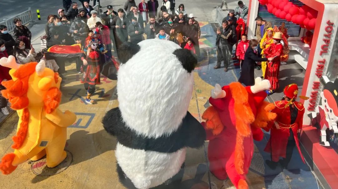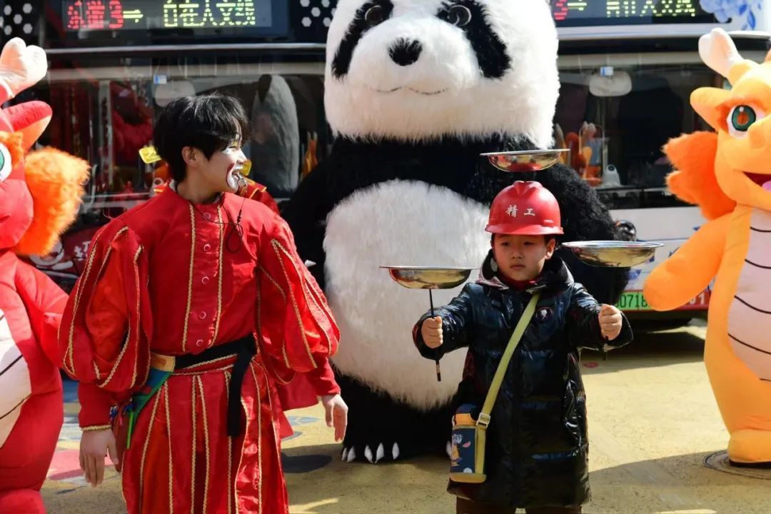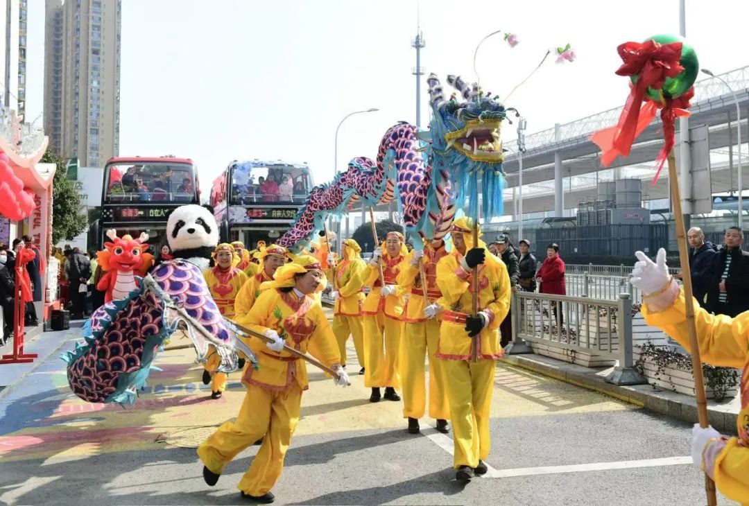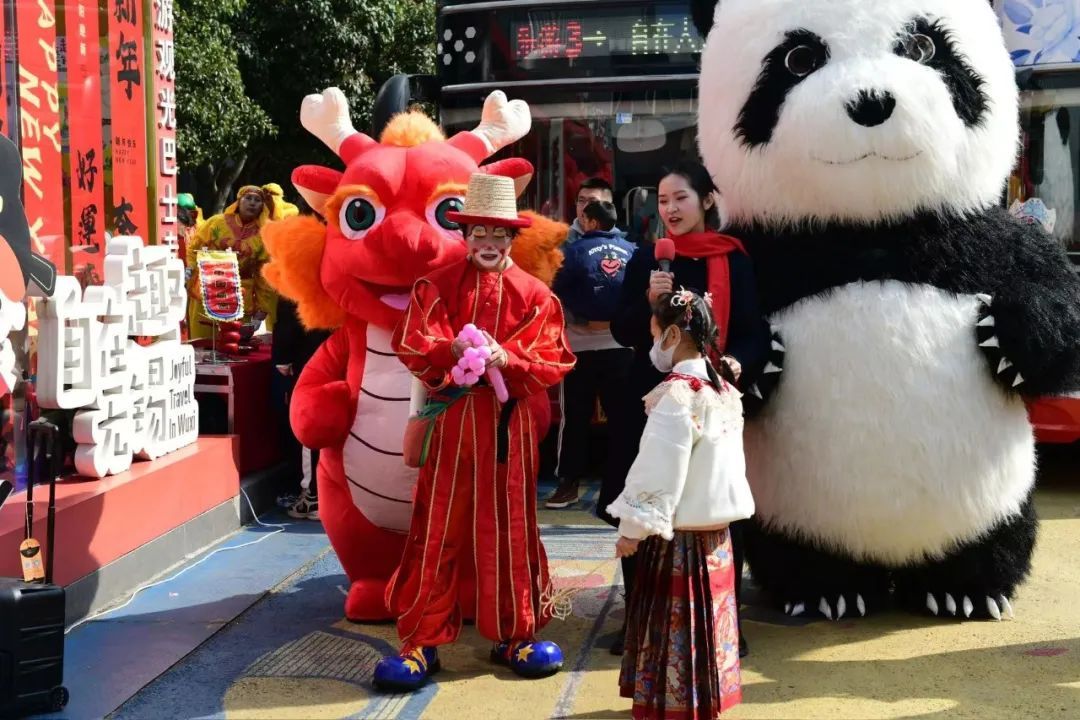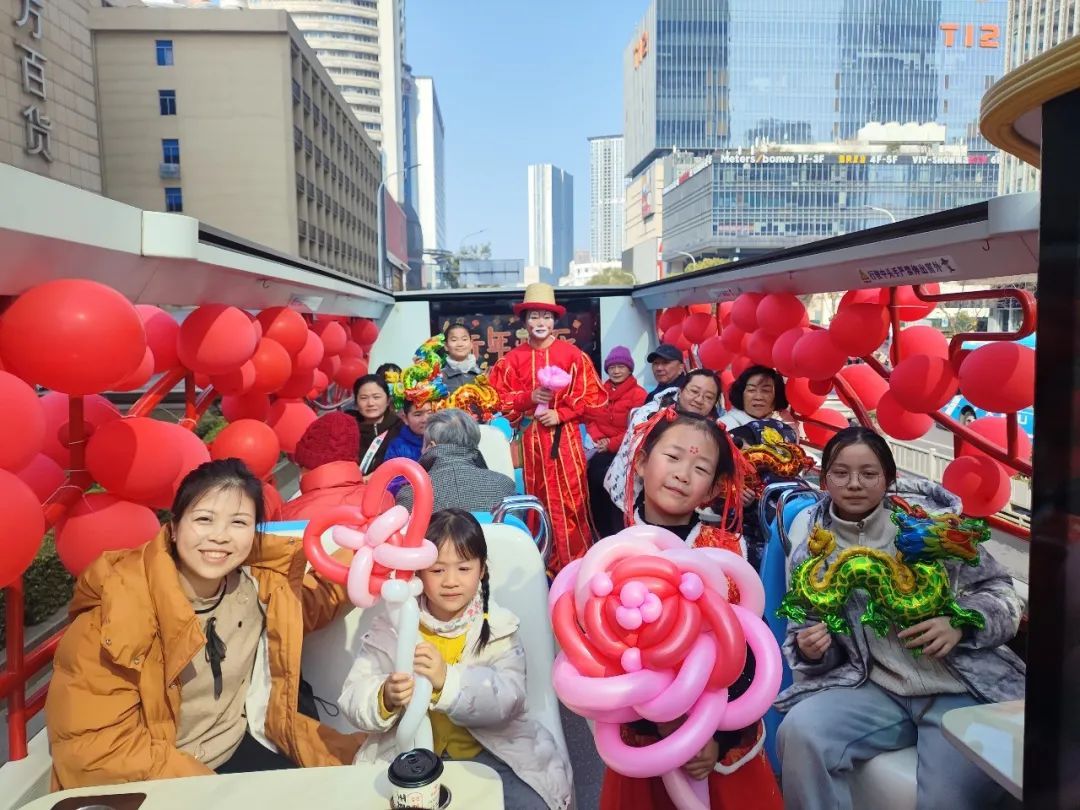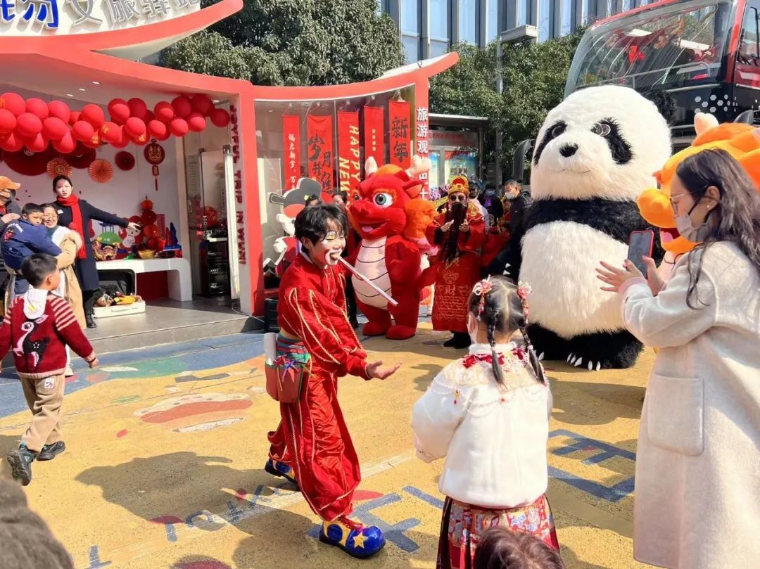 △始发站,“人偶龙”“财神爷”与乘客互动,更有“惊喜彩蛋”掉落