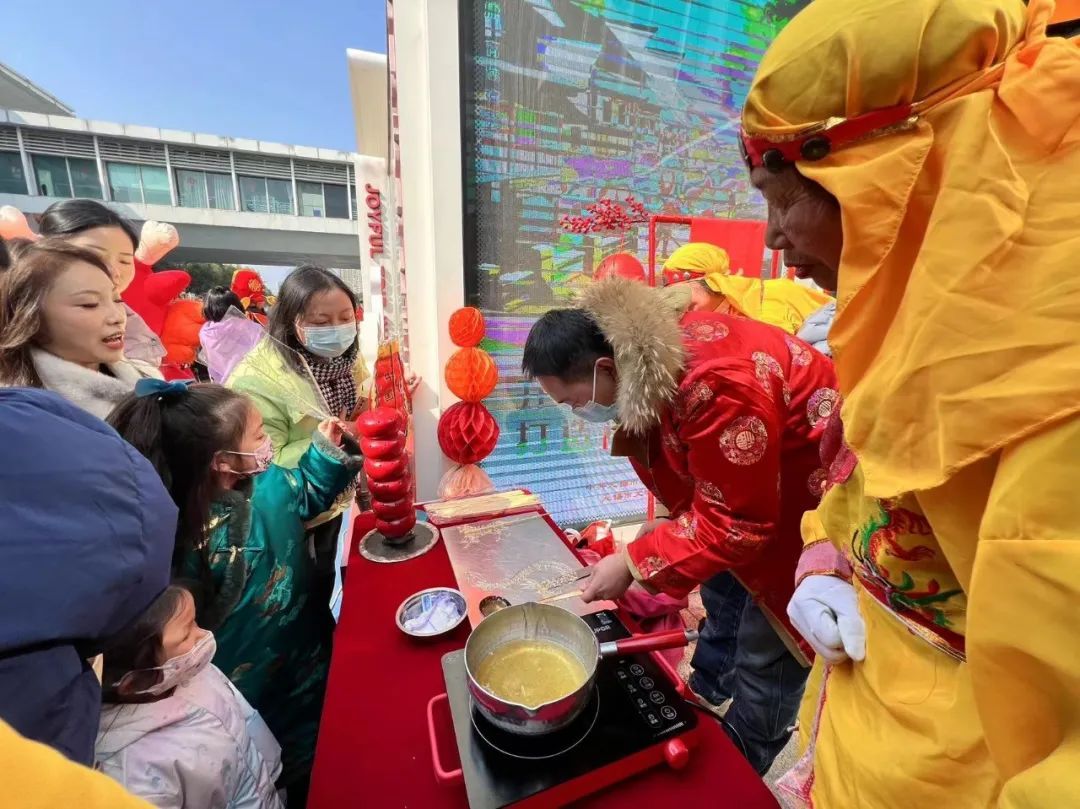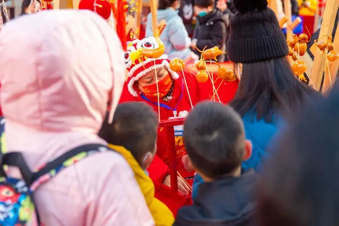 △糖画摊位旁,围满了“大朋友”、小朋友