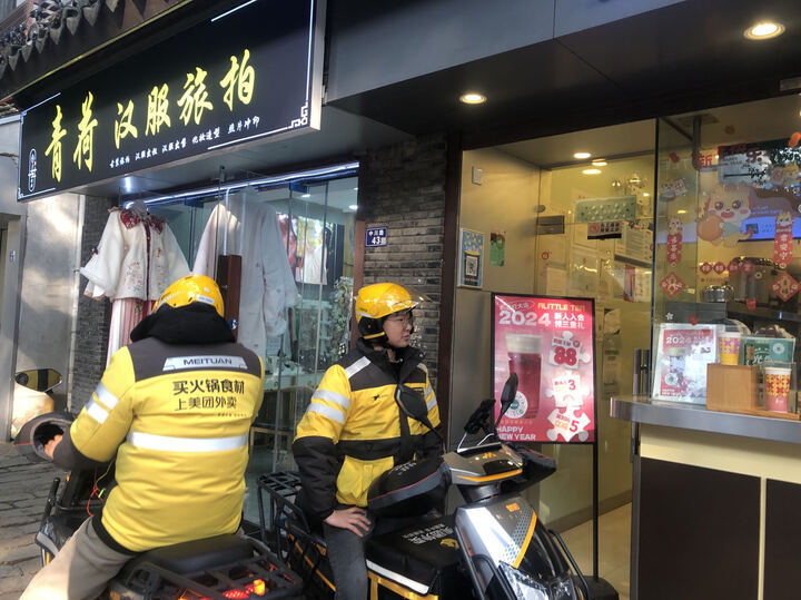 “景区生意落差大,节日生意还是蛮好的,过节就一直忙。我们店里5分钟一杯,今天上班到现在一直没停过。”果茶店服务员说。“我每天要到这儿来取五六十单,这些果茶饮很受年轻人追捧。”美团姓董的骑手说。