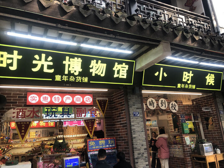 “姐姐给你装好了,22元,你去扫一下”,在店面二三十平米的时光博物馆,买棒棒糖的小姑娘踮起了脚尖,姓李的店员忙碌着。“这边全是小孩的东西,买的人很多。原来那些小朋友吃的东西,像果丹皮、山楂、棒棒糖,这里都有。二楼有抓娃娃。”这位店员介绍,店铺里的怀旧零食很多都是定制的,小店开了一年多,来店里买小吃的孩子很多,每天楼上也有十几号人,最近虾条、麻辣虾条卖得好,刚开业那段时间一天只能卖两三百块钱,现在生意不错,营业额有几千元了,过年期间生意更好。记者看到,时光博物馆隔壁是“小时候”店铺,主打也是怀旧商品。
