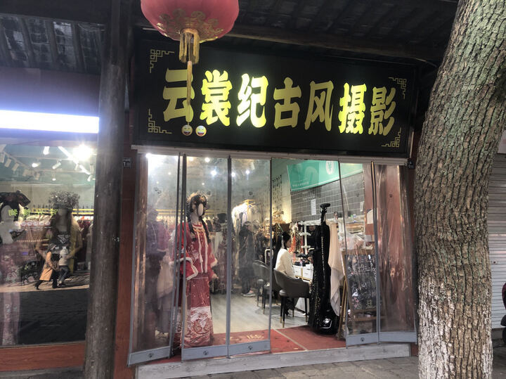 “我们家拍照比较精致,衣服也蛮好看的,可以拍也可以租。刚刚租给了好几个小年轻,一套收费100元,一般客人早上来租,晚上就还回来了。这边开了好多家古装店。过年这边忙得很,节假日顾客特别多。”丽人坊古装摄影店卢琳说。“自己拍也可以,租一套古装100元,要我们摄影师拍,再出个摄影师的费用就可以了”。正在化妆的小林笑道,化上古妆,自己感觉“很惊艳”,拍照一定“美美的”。