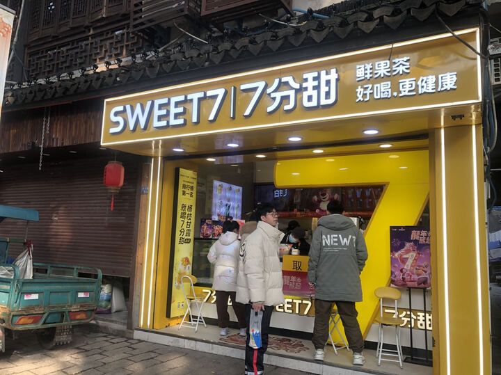 记者手记:7分甜、鲜果茶、茶百道、蜜雪冰城、当心椰子、瑞幸咖啡、酷迪咖啡、一点点、百分茶、茉沏、都可,随着一线城市市场饱和,在同里镇这条不长的小街上,中国新饮品市场下沉的场景突然跃入记者眼帘。
