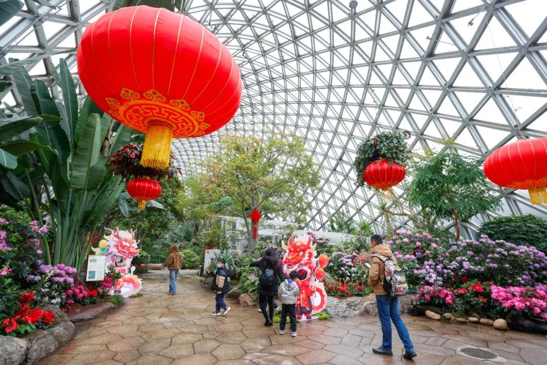 春节期间,一系列新春游园活动也将轮番上演。2月10日至2月17日,姓名中有“龙”字的游客,凭本人有效证件可享免费入园一次;2月8日至2月26日,面向所有入园游客,开展新春登高祈福活动,游客可以自行登山观景、撞钟祈福、悬挂祈福丝带;2月10日至2月17日,入园的游客可凭当天在辰山合照发送微信朋友圈收集点赞,集满24个赞可参与园内福利抽奖。辰山植物园还在2月14日当天推出1314张爱情套票,夫妻、情侣可购买80元优惠套票;2月24日元宵节当天,在热带花果馆(温室A馆)内布置灯谜,游客猜中后赢取花卉盆栽、单日门票等奖品。