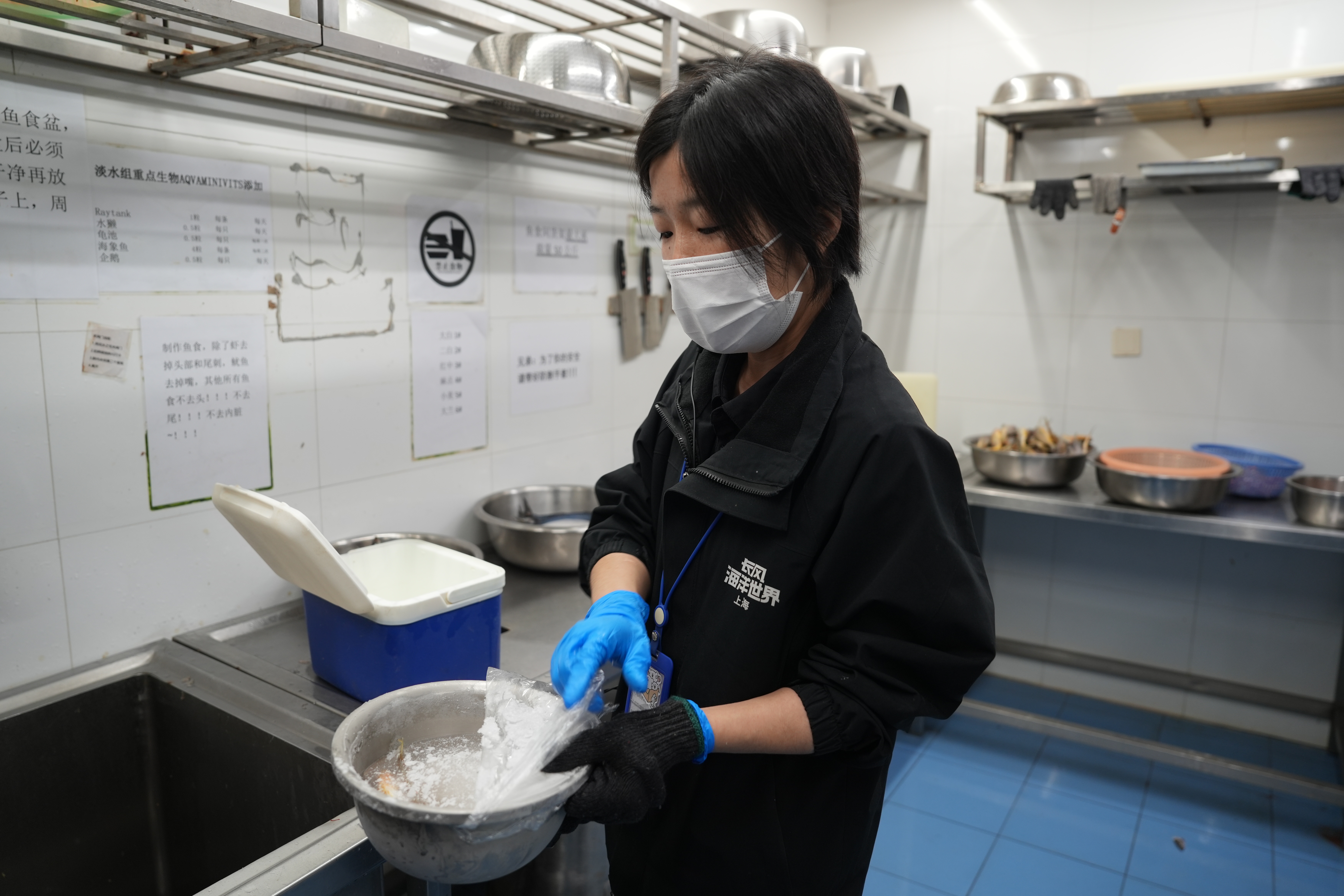 早上8点不到,长风海洋世界还没开门,水族师吴小妮就要给海洋世界的宝宝们准备餐食。春节期间,吴小妮还将给海洋世界的水獭、鲨鱼加餐,定制专门的春节大餐来犒劳这群可爱的海洋世界的朋友们,让他们以饱满的热情迎接游客。