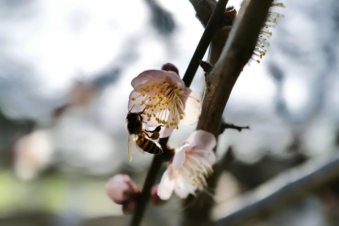 浅粉色的梅花是小清新,小俏皮的仙子。几朵簇拥在一起,风采丝毫不输给春天的樱花。