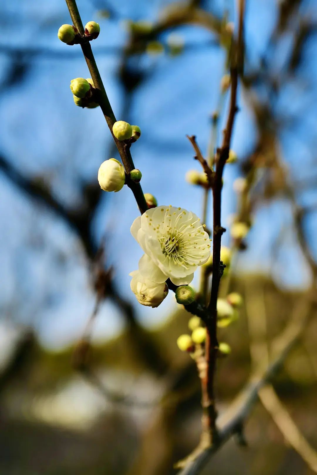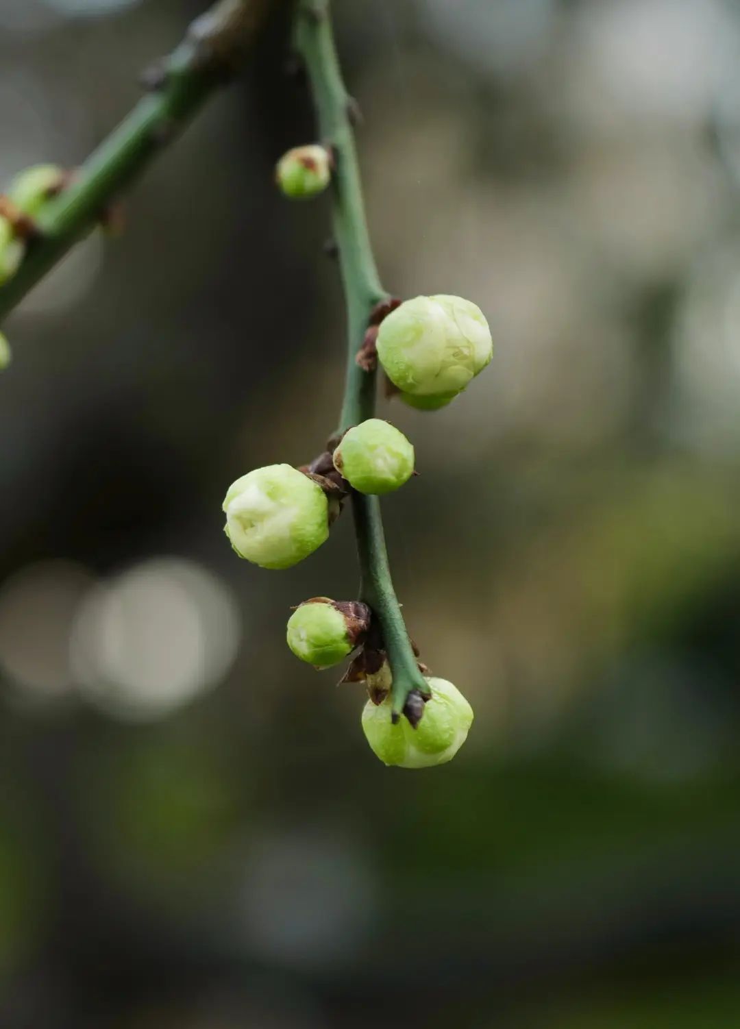 绿梅也是一干梅花里最婉约的那一朵。嫩绿色小花含苞待放。树枝上像挂满了碧玉一般雅致。因其萼绿花白特别好看,自古就是受文人墨客追捧的花中之魁。