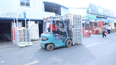 来到辉展果蔬市场,商户们在水果摊前热闹地讨论着,载满水果的叉车也不停地在道路上穿梭,相较前几日,这里也逐渐火热了起来。