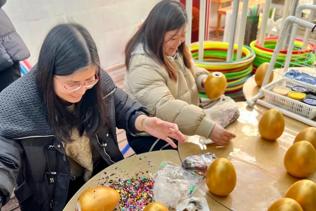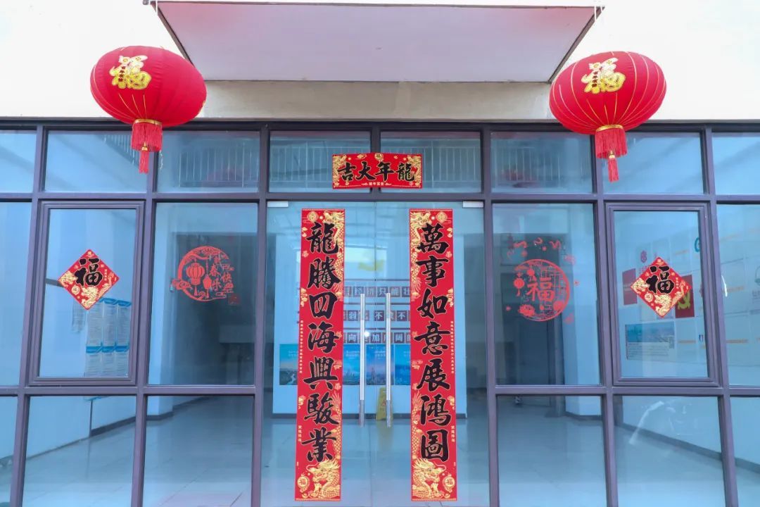 在金汇园区里,不少企业的门口大红灯笼高高挂起,春节的喜庆氛围依旧十分浓郁。门上和窗户上也贴上了福字和春联,一句句大气磅礴的祝福语承载着公司的美好愿景,也给今天开工的员工们加了把劲!