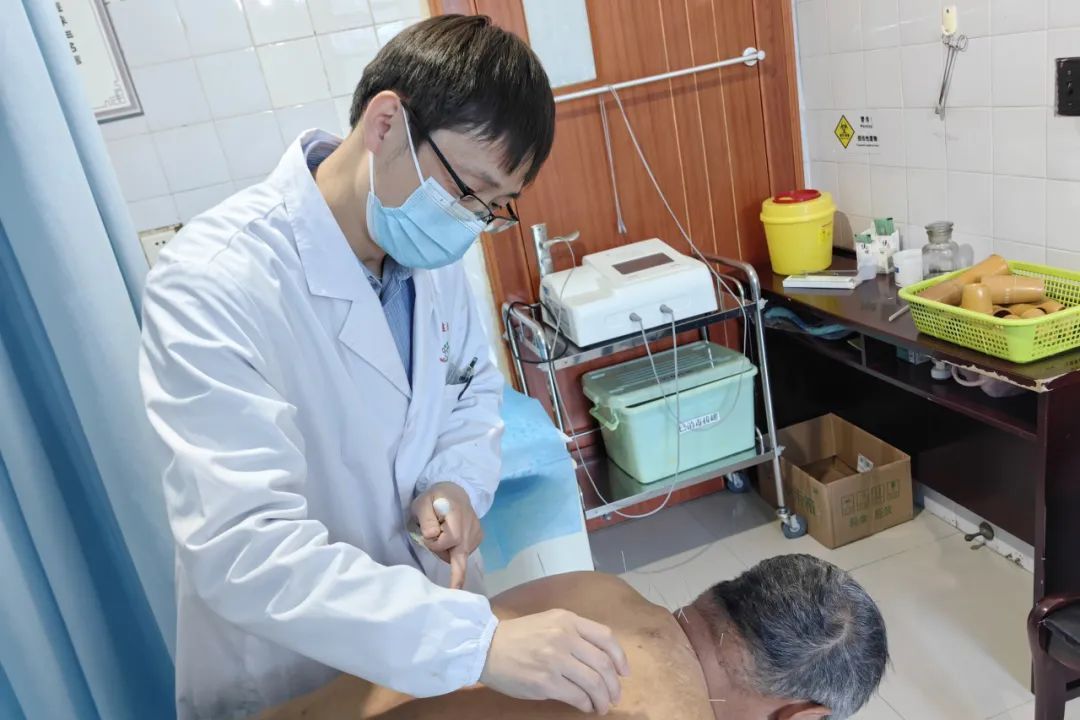 在泰日卫生服务中心的中医针灸科,王医生正在为吴阿伯针灸。吴阿伯说:“假期过后觉得脖子酸,手脚也提不起劲,所以来看看。”