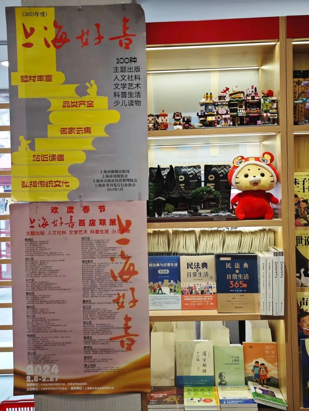 2024年2月8日至27日,上海市书刊发行行业协会联合本市100家书店举办“欢度春节·上海好书百店联展”活动,以期发挥行业线下线上多渠道优势,开展多领域、多渠道、多层次、多样化的文化活动,保障读者文化需求,释放消费潜力,举办丰富多彩的书香惠民公益活动。