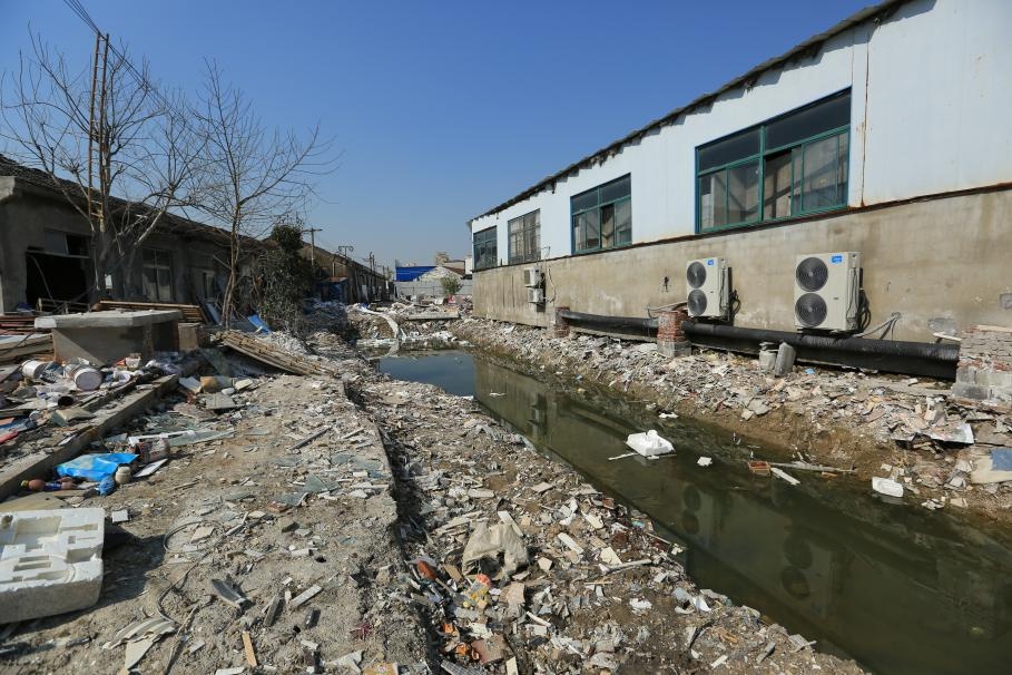 山阳镇油车港支河属村级河道,全长365米,为东西走向。整治前,河道南岸建材市场生产的建材废料直接倾倒入河道内阻塞河道,河道两岸的小作坊、小工厂的生产、生活污水直接排放入河道,同时河道两岸违章建筑侵占河道水体面积。通过拆除违章建筑、取缔不合规作坊以及拆坝建桥、疏拓河道等工程完成了岸水共治,让河道重归清澈。