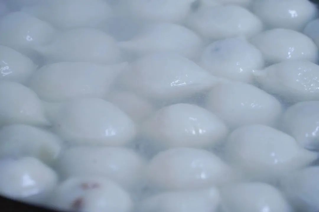 开水下锅,等汤圆全部浮起,点一次水后煮开即可食用。
