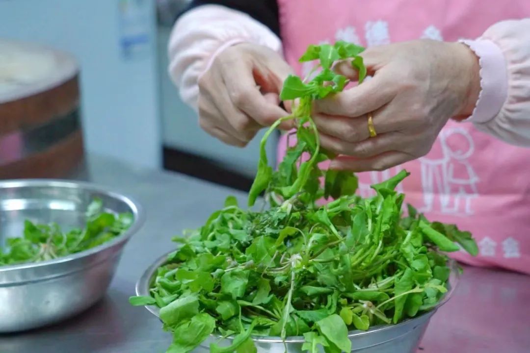 把荠菜的老叶摘除,清洗干净焯水切碎备用。