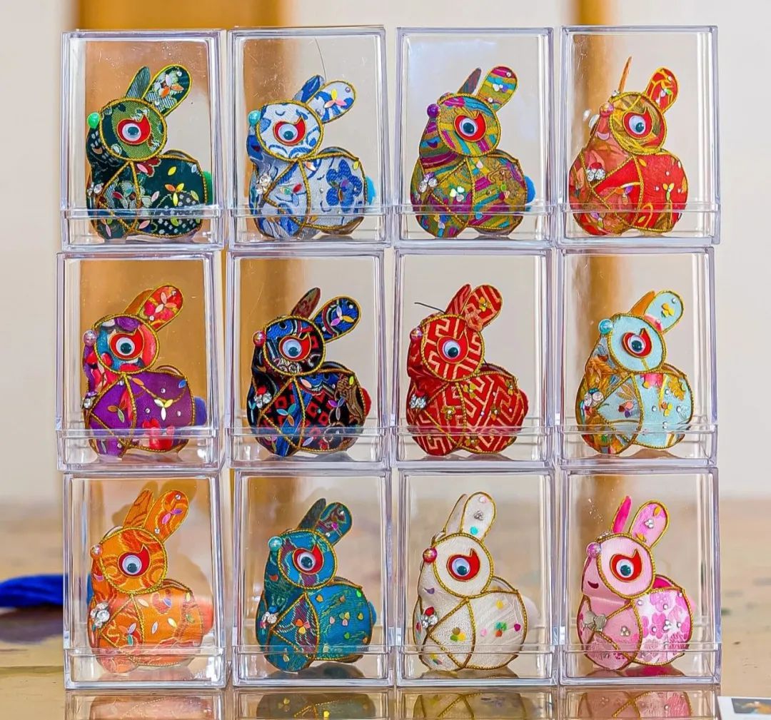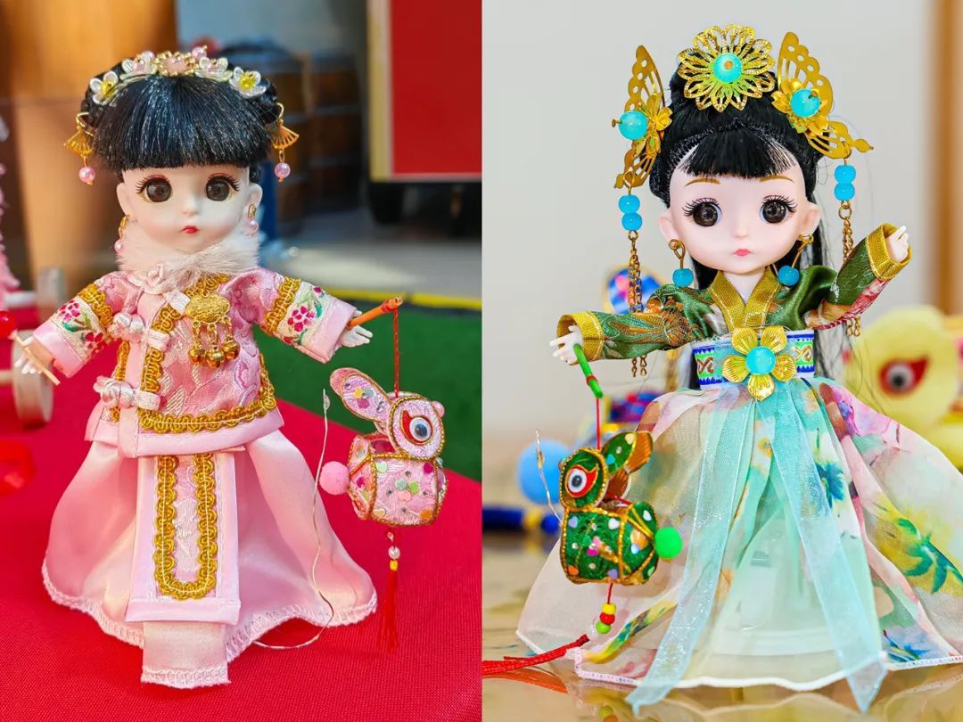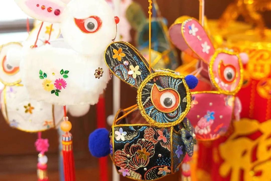 最迷你的款式是提在小玩偶手中的兔子灯,尺寸更是缩小到手指大小,和穿着传统元素服饰的玩偶“配套”,相映成趣。