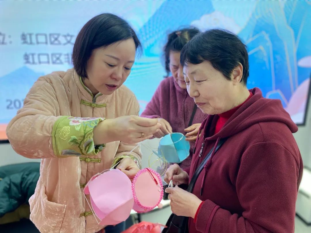 “大家看我示范,把纸一点点粘合上去,注意饱满度!”元宵佳节前,在江湾社区会客厅,居民们正在虹口非物质文化遗产传承人韩凤的指导下,赶制兔子灯。这些兔子灯将有机会在虹口非遗花灯元宵活动中亮相。