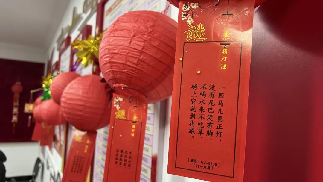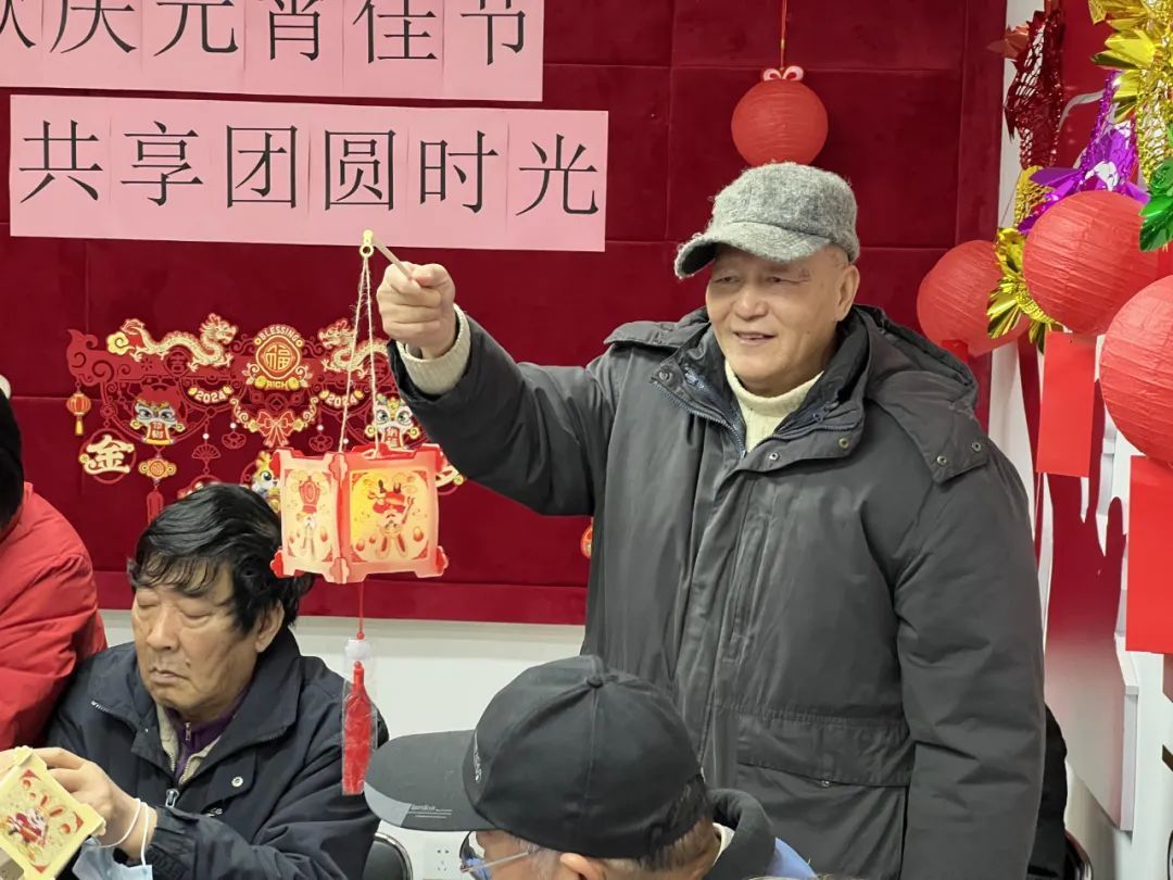 除了兔子灯,江浦路街道退役军人服务站,还特地准备了飞龙灯应景,为现场增添了喜庆热闹的气氛。猜灯谜是闹元宵的传统节目,活动现场,大家一边吃汤团,一边猜灯谜,元宵节欢庆喜乐的氛围,被推向了最高潮。