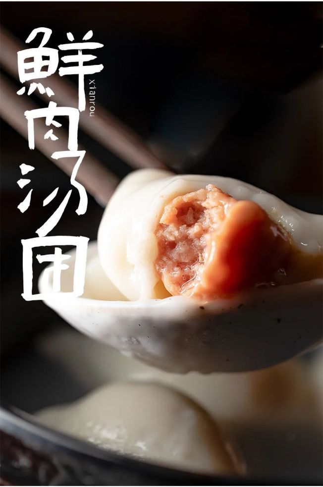鲜肉汤圆和生煎的芯子不是同一种,咸鲜中带点微甜,吃起来更加清爽~