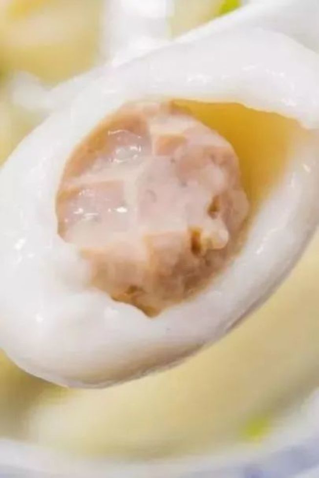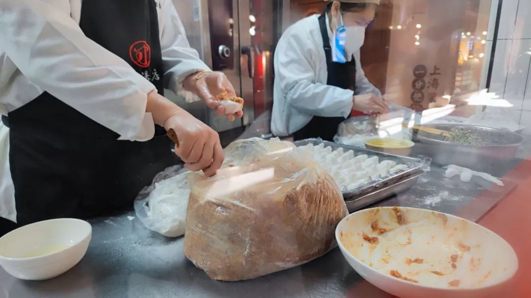 对于王家沙来说,兼具“两层花边”和“18个褶”的鲜肉汤团就是他的独门秘籍,这样独特的汤团包法是为了保证在汤圆皮最薄的情况下也能收住饱满的肉馅,所以“皮薄肉厚”是他们家鲜肉汤团的一大特点。