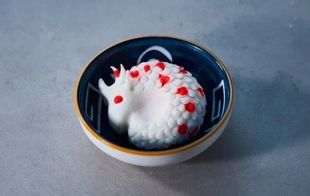 今年宁波汤团推出了新品龙形糯米福团,外形结合传统玉质腰牌和龙的形象,专为龙年设计,每日限量30只。