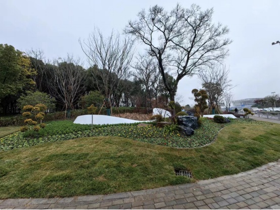 绿道建设运用城市空间景观绿化的设计理念,因地制宜地对现状绿化做改造提升,保留景观效果较佳的植物群落和树种,形成空间感、层次感,与七莘路周围环境交相呼应。