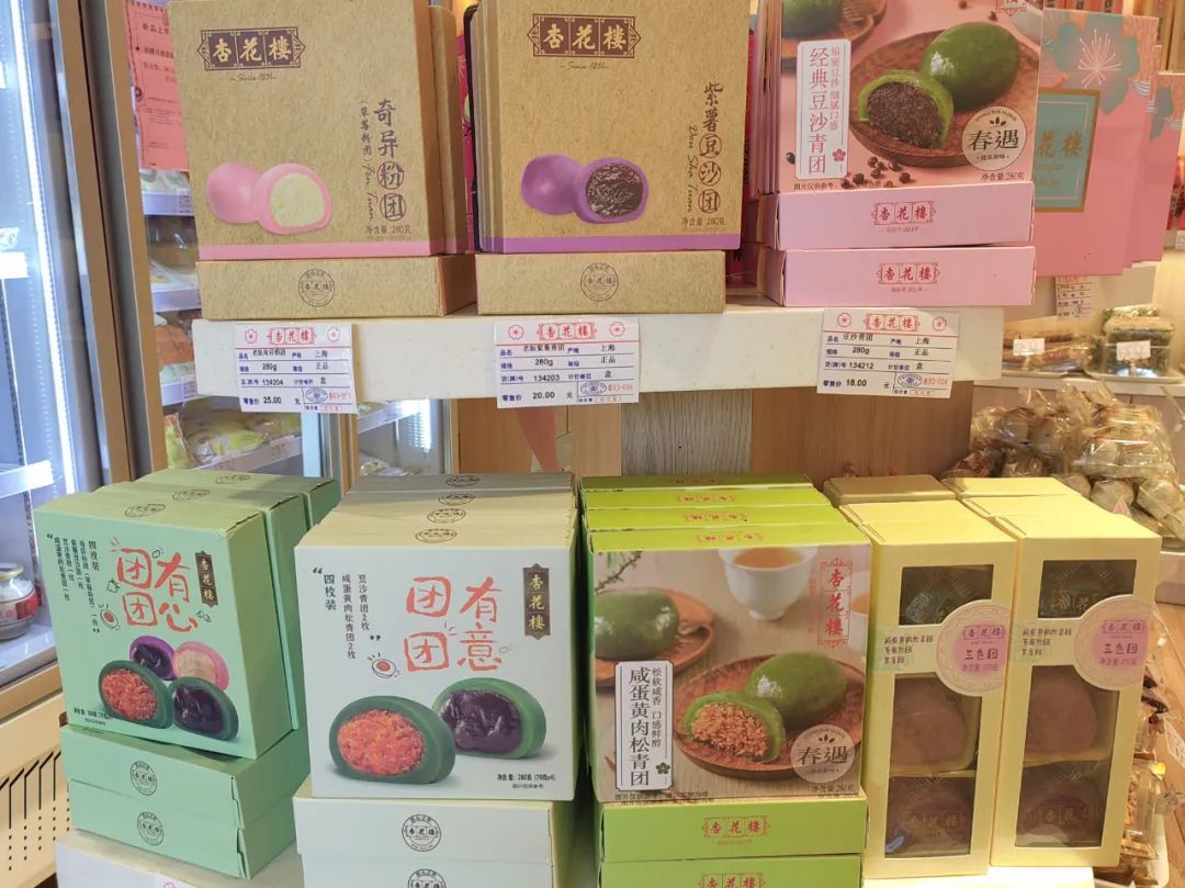 在杏花楼嘉定店,多种口味和包装的青团占据了门店的C位,不时有市民前来选购。“青团对我来说是一种记忆,我妈妈在我小的时候经常做青团给我们吃。”市民薛琴说,“我自己现在也会做,有时候也会买点,喜欢艾草的味道。”