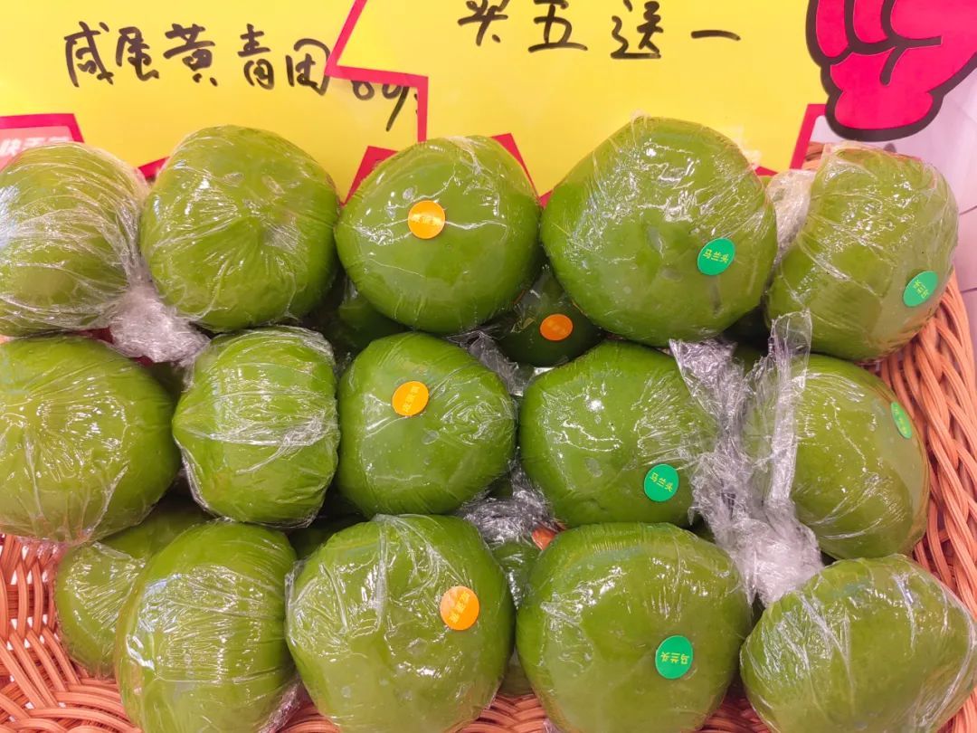 在老盛昌福海店,豆沙、马兰头和咸蛋黄肉松三种口味的青团已经被摆在了门店的显眼位置。根据口味的不同,价格从每只4元-8元不等,同时还推出了“买5送1”的促销活动。“今天看到新上市的青团,买几个尝尝鲜。”市民周舫说,“喜欢青团,不仅是喜欢这个味道,更是因为吃青团是一种传统文化。”