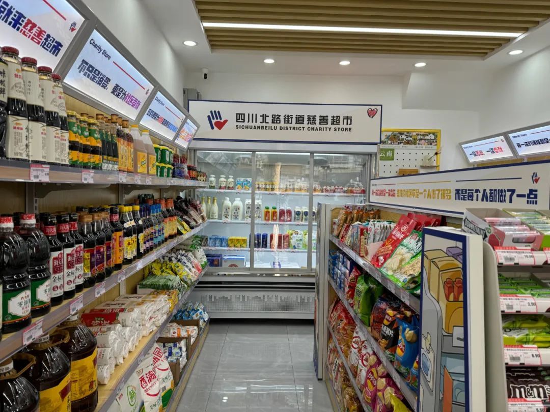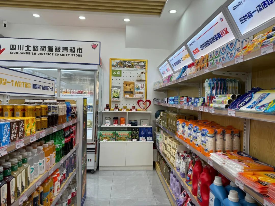 慈善超市运营方上海善行文化发展有限公司相关负责人介绍,在四川北路街道的指导和前期调研的基础上,慈善超市根据居民需求开辟了帮困救助、金龙鱼专柜、 乡村振兴、企业捐赠和福利彩票五大区域,各类商品一应俱全,基本可以满足周边居民的日常生活物资需求。其中,金龙鱼专柜区有从益海嘉里引进的金龙鱼大豆油、葵花籽油、珍珠米等生活必需品,价格均为市场销售最低价,乡村振兴区有松茸腐乳、小黄姜干姜片、小碗红糖等云南、贵州、新疆等地特产,并每个月定期推出不同产品的公益套餐,满足居民群众的多元需求。